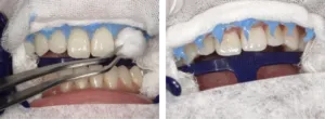 ホワイトニング薬剤を洗い流し、保護剤を外していきます