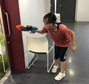 スポンジの玉を当てるゲームで