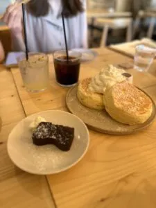 私は最近お休みの日にお姉ちゃんと親戚とパンケーキを食べに行きました😊