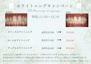 11月20日〜12月16日の期間限定でホワイトニングキャンペーンを行います🤩